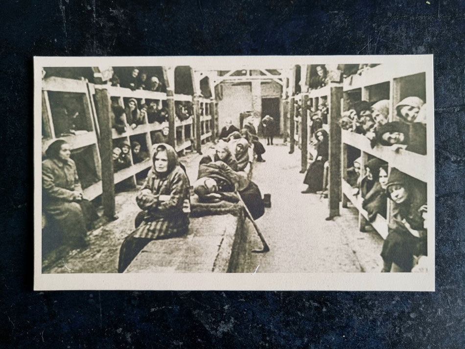 Hieronder een bijzondere foto uit kamp Ravensbrück, die een indringend beeld geeft van de overbevolking in de vrouwenbarakken. Op de voorzijde zijn tientallen gevangenen te zien, dicht op elkaar gepakt tussen rijen houten stapelbedden. Hun vermoeide blikken en de krappe omstandigheden illustreren hoe groot de druk op het kamp was in de laatste oorlogsjaren.